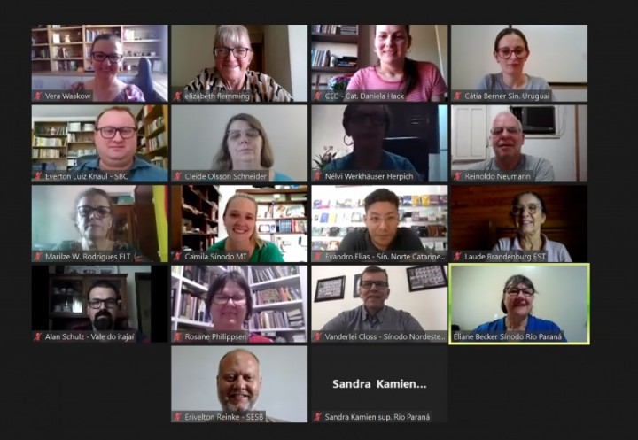 Ainda com o recurso da sala virtual, a Coordenação do CONECC organizou um encontro dinâmico e objetivo, que ocupou boa parte do dia 29 de março de 2022. Ao todo, 25 pessoas estiveram presentes, representando 14 sínodos da IECLB, Faculdades EST, Faculdade Luterana de Teologia, Núcleo de Produção e Assessoria e Coordenação de Educação Cristã da Secretaria da Ação Comunitária da IECLB.