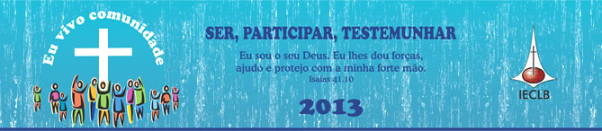 Tema do Ano 2013 – Texto-base Tema: SER, PARTICIPAR, TESTEMUNHAR Eu vivo comunidade Lema: Isaías 41.10: Eu sou o seu Deus. Eu lhes dou forças, ajudo e protejo com